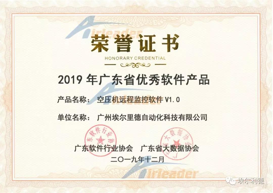 2019年歲末,廣東軟件行業(yè)協(xié)會(huì)、廣東省大數(shù)據(jù)協(xié)會(huì)聯(lián)合組織開(kāi)展了“2019年廣東省優(yōu)秀軟件產(chǎn)品”評(píng)選活動(dòng),并于12月20日發(fā)布了入選名單。埃爾利德空壓機(jī)遠(yuǎn)程監(jiān)控軟件V1.0憑借創(chuàng)新的技術(shù)和規(guī)模化的應(yīng)用以及客戶的高度認(rèn)可榮耀登榜。
