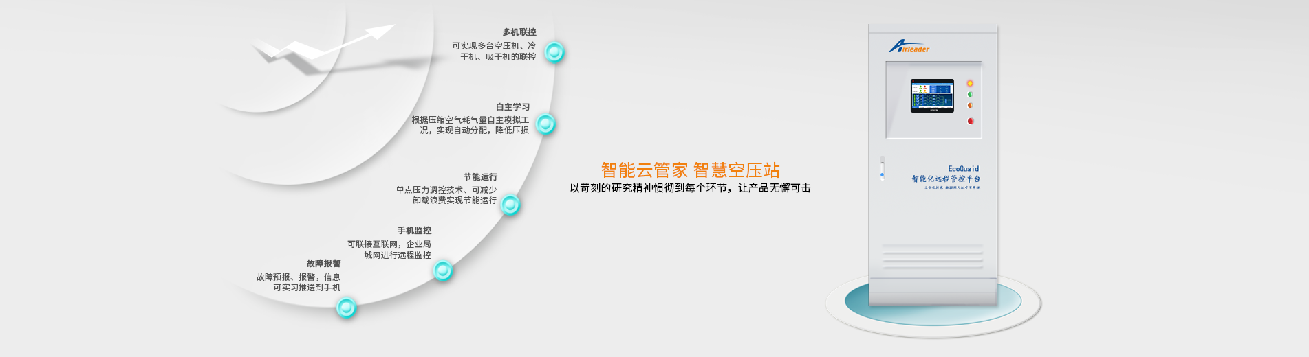 Airleader十年來(lái)致力于壓 縮空氣系統(tǒng)的智能化監(jiān)控及節(jié)能改造,以“建立智能生產(chǎn)”為企業(yè)愿景