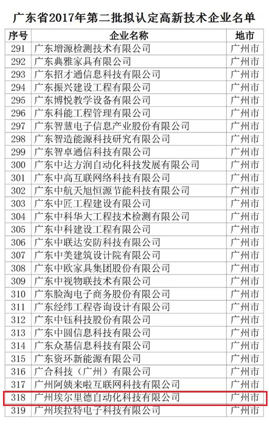 12月11日,根據(jù)《高新技術(shù)企業(yè)認定管理辦法》(國科發(fā)火〔2016〕32號)和《高新技術(shù)企業(yè)認定管理工作指引》(國科發(fā)火〔2016〕195號)有關(guān)規(guī)定及相關(guān)公示,埃爾里德公司被擬認定為廣東省2017年公布的第二批國家高新技術(shù)企業(yè)。通過國家高新技術(shù)企業(yè)認定,埃爾里德公司將獲得國家一系列政策支持,為進一步提升企業(yè)的研發(fā)能力、市場競爭力、品牌建設(shè)增添了新動力。